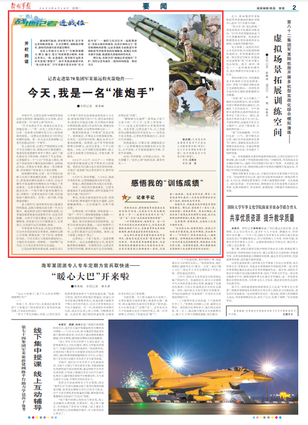 即日起,本版开设“战地记者进战位”专栏,刊登记者从战位一线发回的报道。敬请关注。