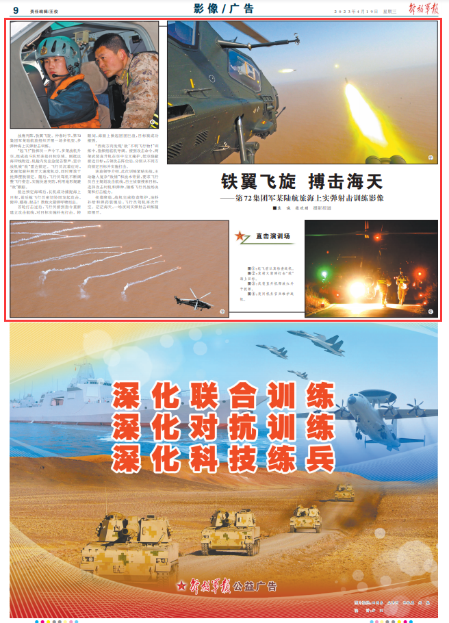 战鹰列阵,铁翼飞旋。仲春时节,第72集团军某陆航旅组织开展一场多机型、多弹种海上实弹射击训练。