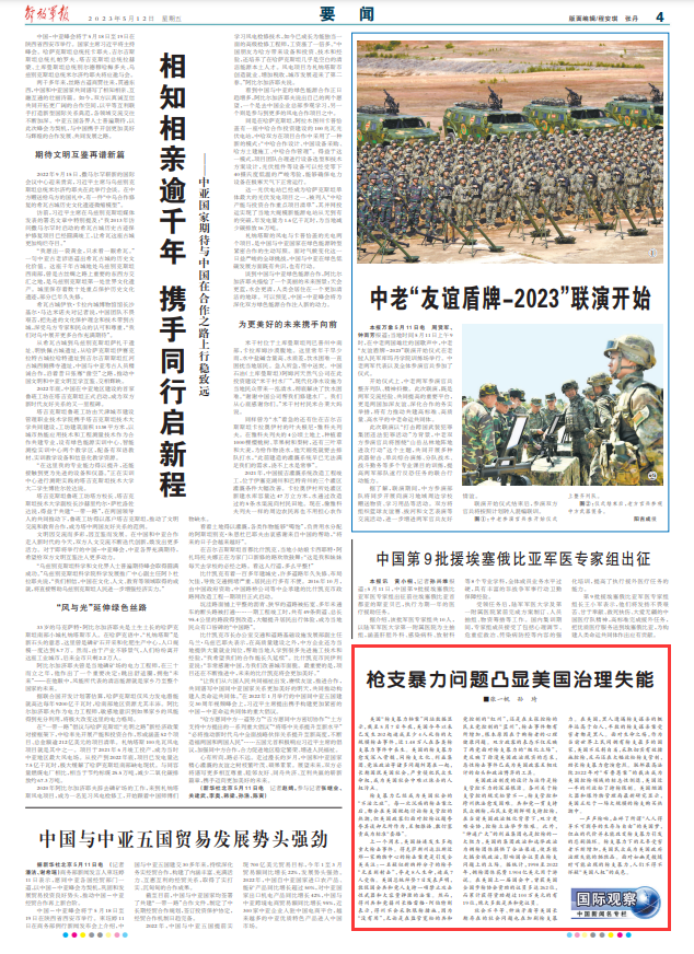 美国“枪支暴力档案”网站数据显示,截至5月7日午夜,美国今年以来已发生202起造成至少4人死伤的大规模枪击事件,近1.48万人在各类枪支暴力事件中丧生。美国的枪支暴力愈发深入骨髓,同枪支文化、利益集团、党派政治等诸多问题纠葛在一起,长期困扰美国社会,严重侵犯民众生命权,成为美国社会中难以抹去的人权污点。