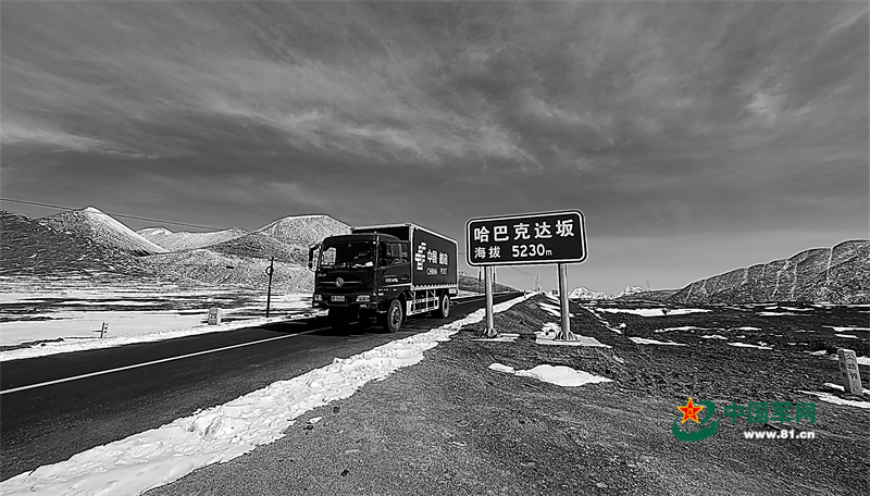 正在翻越达坂的中国邮政运输车。图片由哨所官兵提供
