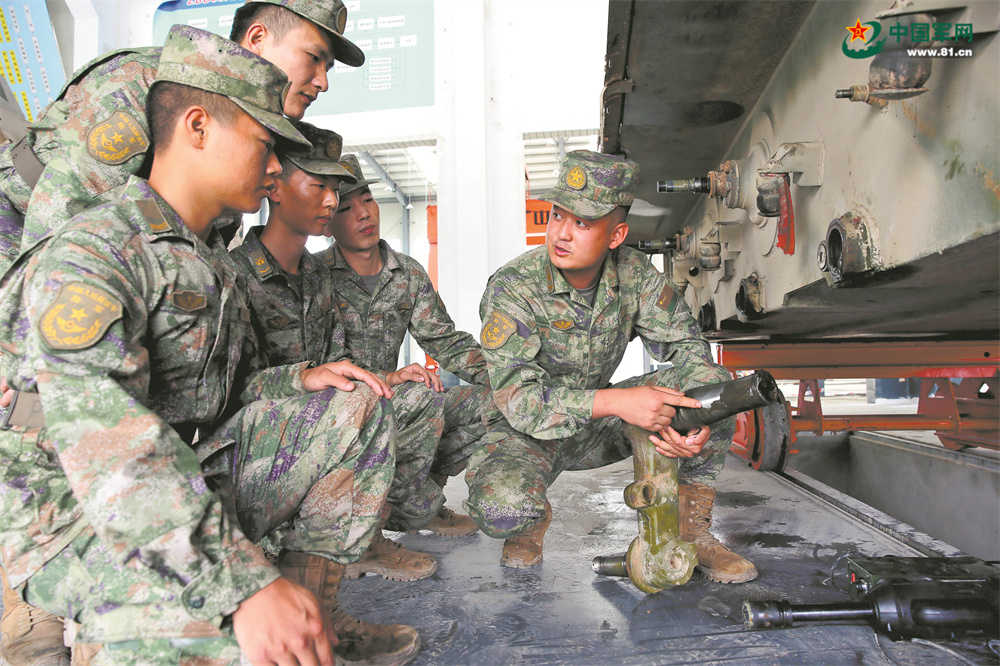 第77集团军某旅临时留守连队官兵对装备进行拆卸与安装训练。张建平摄