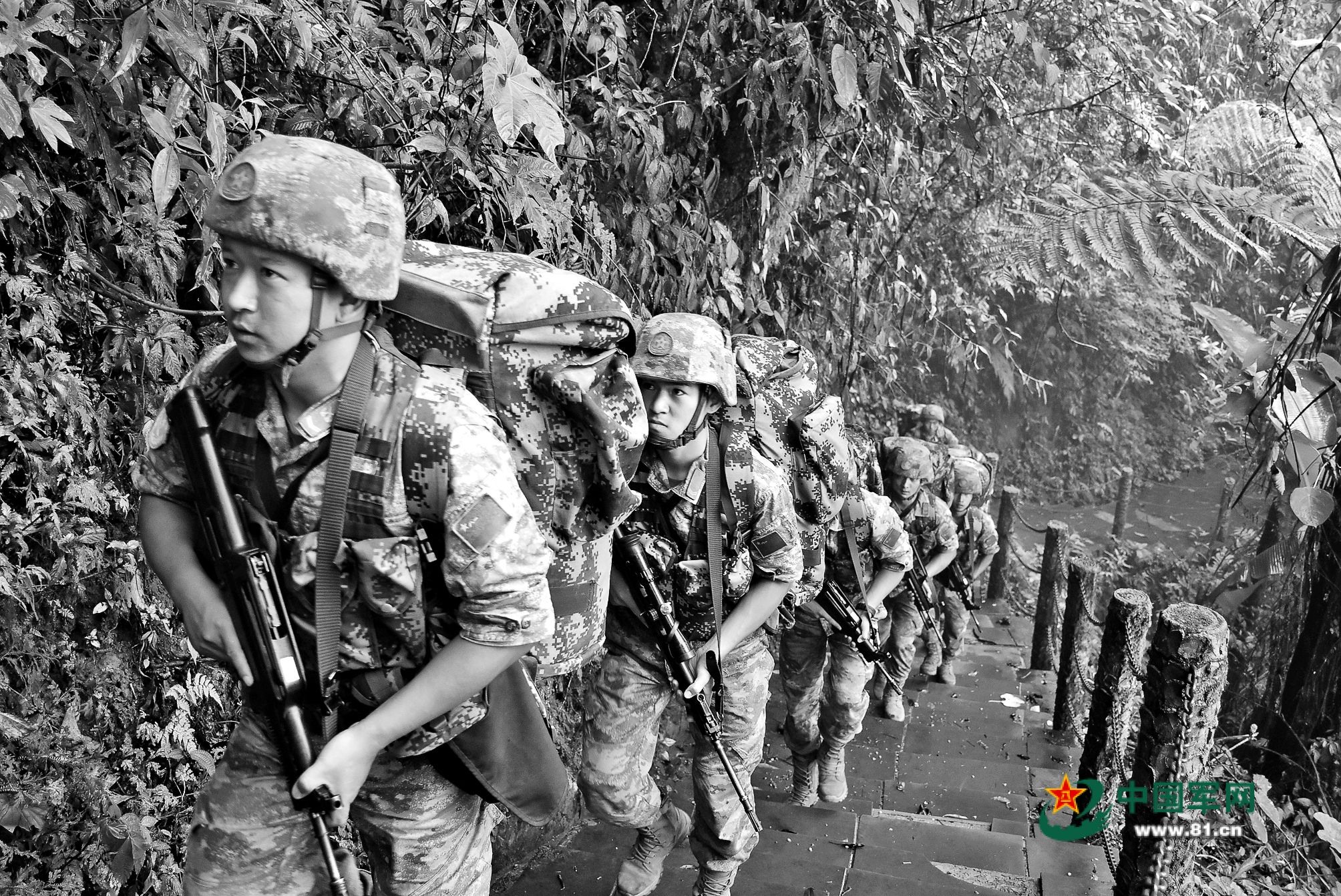 巡逻官兵列队上山。解放军报记者王雁翔、栾 铖摄
