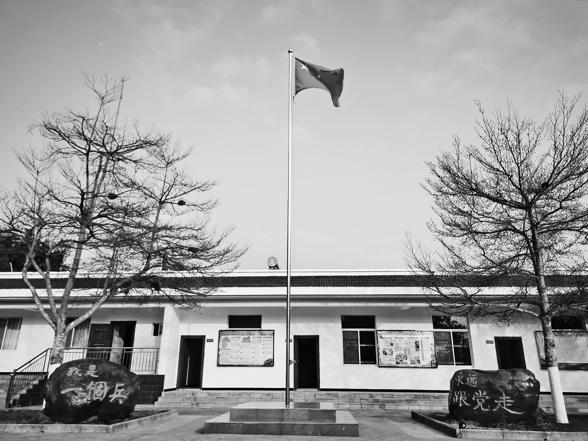 飘扬在连队上空的五星红旗。解放军报记者王雁翔、栾 铖摄