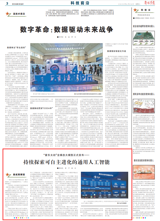 该研究所所长徐波表示,他们以“紫东太初”大模型为基础,持续探索与类脑智能、博弈智能等技术路径的相互融合,最终实现可自主进化的通用人工智能,并将探索在更多领域发挥其赋能价值,为促进我国数字经济快速发展贡献力量。