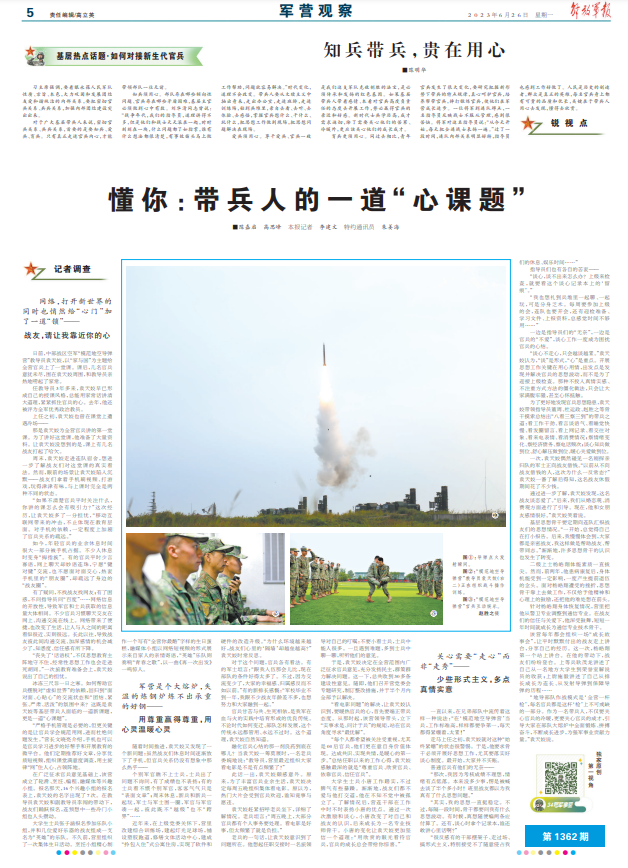对于广大基层带兵人来说,密切官兵关系、兵兵关系,首要的是要知兵、爱兵、育兵。只有真正走进官兵内心,才能带领部队一往无前。