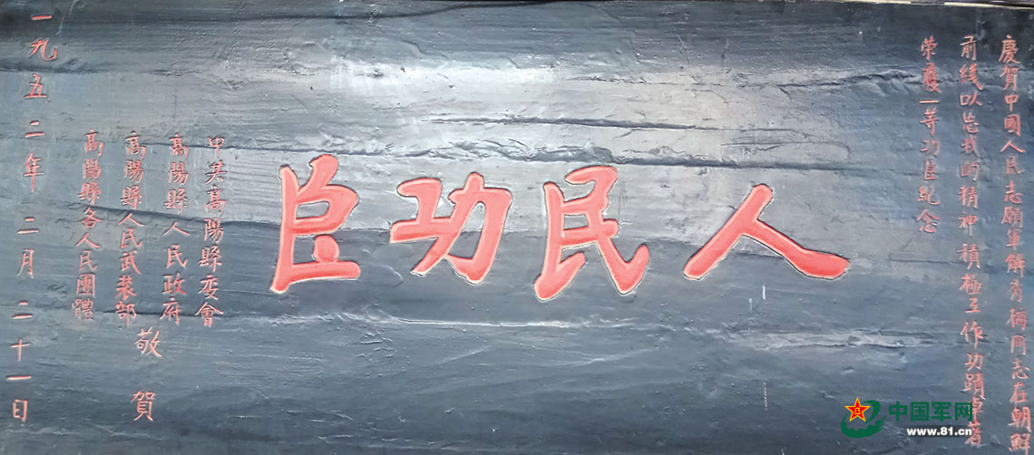 当地政府部门颁发给解秀梅的一等功牌匾。资料图片