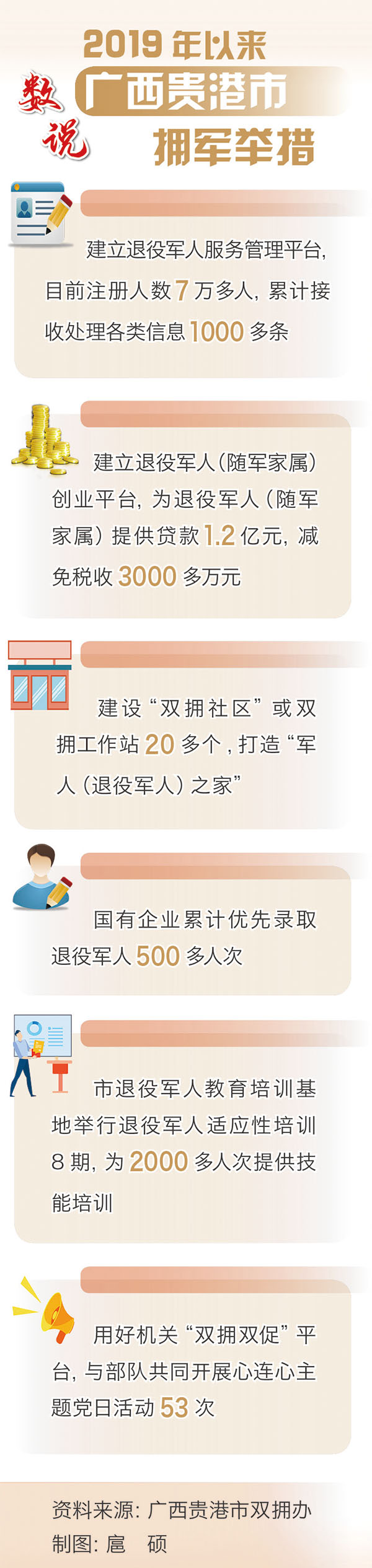 从专属“拥军码”到购物优惠,从优先聘用到创业优待,一系列暖心举措,源自贵港市几十年来拥军优属的优良传统。