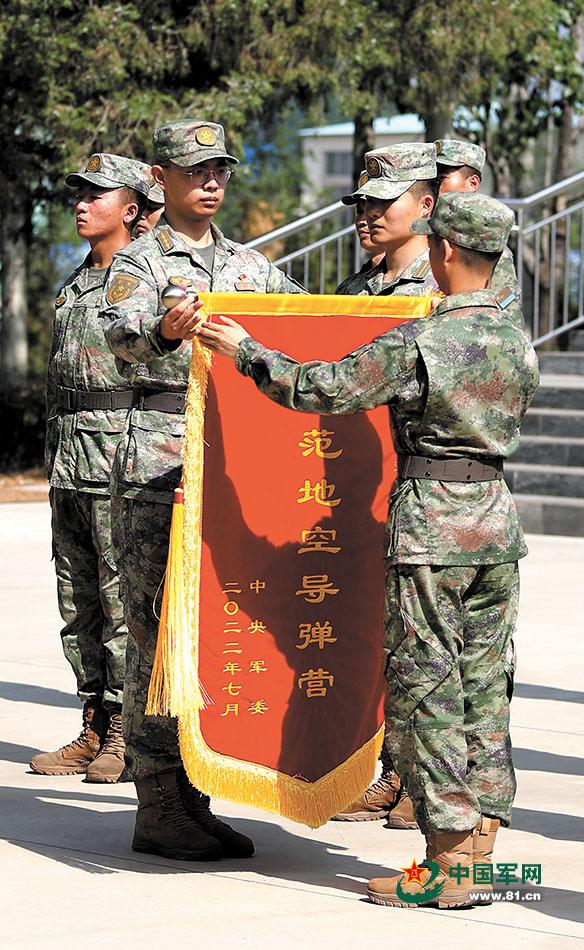 2022年7月27日,该营被中央军委授予“模范地空导弹营”荣誉称号,习主席亲自将奖旗授予营长文晓亮和教导员袁天姣。