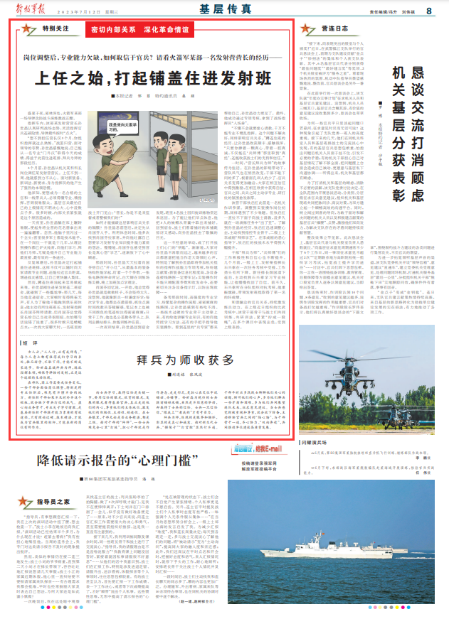 “不懂不会就要虚心请教,千万不能专业不精乱指挥。这个问题不解决好,同样影响官兵关系。”蹲连住班的经历,让孙世晶收获颇丰、感触很深,“只要你捧着一颗真心、带着一腔真诚,不仅能在‘兵师傅’那里取到‘真经’,还能收获战士们的支持和信任。”