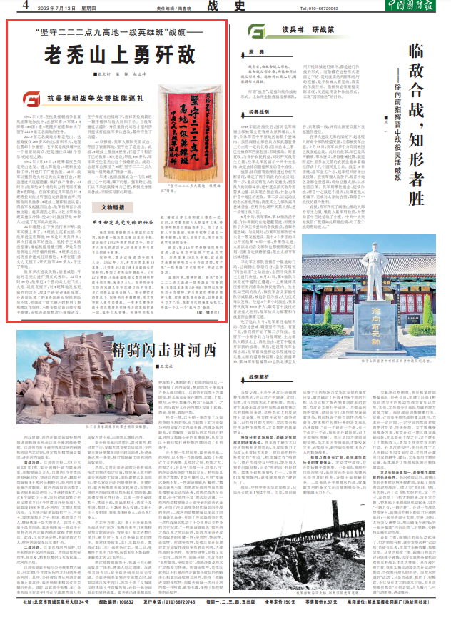 23日拂晓,我军大部队英勇反击,夺回了表面阵地,坚守住了老秃山。此战,4班战士激战4昼夜,打退了十数倍于己的敌军13次进攻,歼敌500多人,牢牢掌控住老秃山这个战略要点。战后,志愿军总部授予4班“坚守二二二点九高地一级英雄班”锦旗一面。