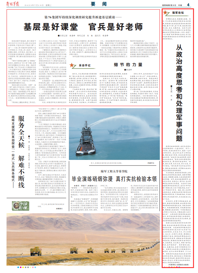 军事服从政治、战略服从政略。近日,习主席在视察东部战区机关时强调,要坚持从政治高度思考和处理军事问题,敢于斗争、善于斗争,坚决捍卫国家主权、安全、发展利益。这是习主席运用马克思主义立场观点方法思考把握政治与军事的辩证统一关系,体现了“五个坚持”的军事观和方法论,对于我们党统筹推进政治与军事的良性互动具有重要意义。
