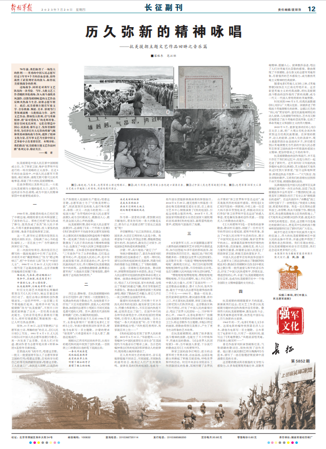 在战争期间以及胜利之后,一大批以抗美援朝为主题的脍炙人口、流传久远的音乐作品涌现,成为中国人民精神家园中的重要组成部分。