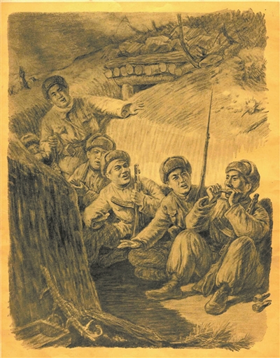 当年,志愿军出国作战后不久,便有一批文艺工作者奔赴战场一线。在极为艰苦的条件下,他们以不同的媒介、形式和艺术手法,着力表现人民志愿军保家卫国的坚定决心与不屈意志。