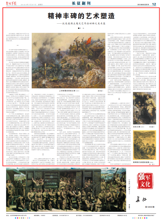 图像承载的是历史,铭刻的是精神。70多年来,抗美援朝对于美术家是深深铭刻于心的主题。特别是近年来,国家主题性美术创作系列工程启动,美术家正以崭新的姿态,赋予新时代人民文艺新的内涵。抚今追昔,一幅幅凝聚着厚重历史文脉与民族精神的作品,正源源不断地给我们奋进的力量。
