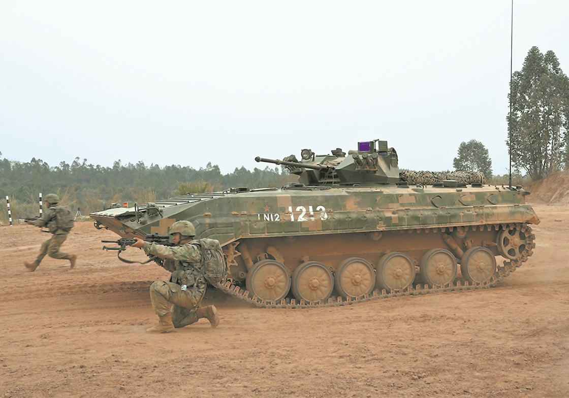 “目标信息已捕获!”盛夏岭南,某野外驻训场尘土飞扬,第74集团军某旅正在组织装甲步兵分队战术演练。