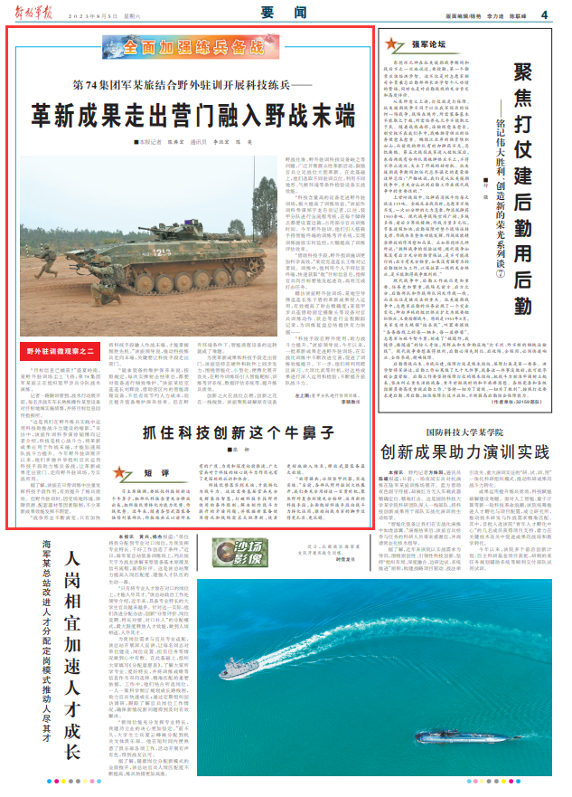 科技优势落实到末端,才能转化为战斗力。这就需要基层官兵充分发挥集体智慧,打破科技手段野外使用的条件限制,解决制约战斗力提升的矛盾问题,并根据新装备使用情况和战场需求大胆革新,使其更好地融入体系,释放武器装备最大效能。