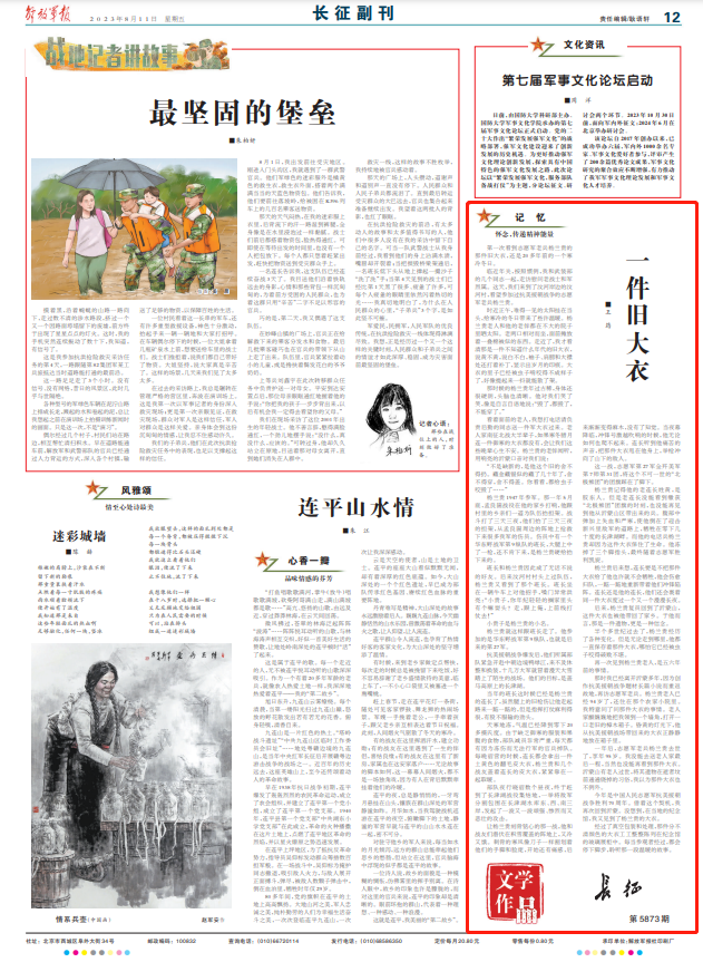 杨兰贵后来想,连长要是不把那件大衣给了他也许就不会牺牲,他会伤愈归队,一踮一踮地重新带着他们冲锋陷阵。连长还是他的连长,他们还会裹着同一件大衣度过一个又一个漫漫长夜。