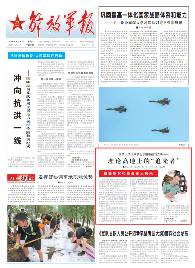 “作为一名理论战士,就要敢于捍卫真理、善于传播真理。”刘光明告诉记者,2003年,他被抽调到国防大学马克思主义研究所工作,从此走上了理论研究之路。此后20年间,刘光明始终紧跟党的理论创新步伐,积极做好宣传阐释工作,把传播中国化时代化的马克思主义作为为之奋斗的事业。