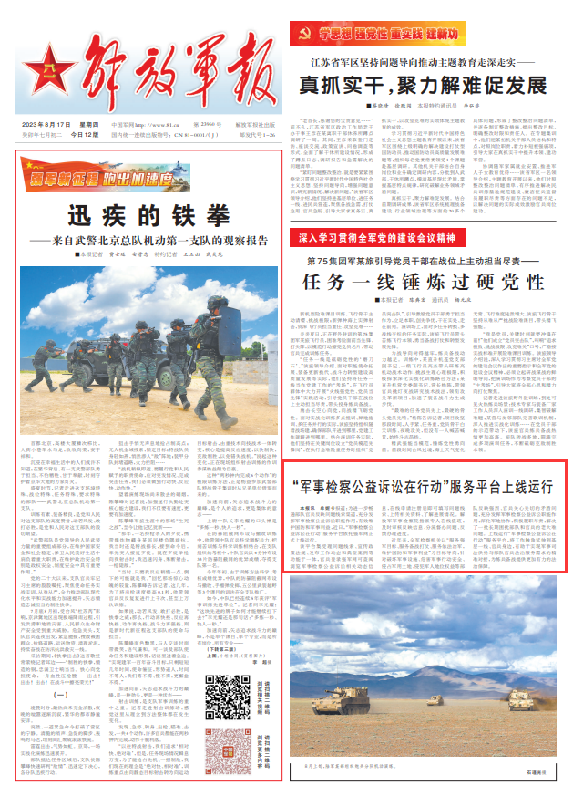 解放军报讯 牟妮卡报道:为进一步畅通部队官兵反映问题线索渠道,充分发挥军事检察公益诉讼职能作用,有效维护国防和军事利益,近日,“军事检察公益诉讼在行动”服务平台依托强军网正式上线运行。