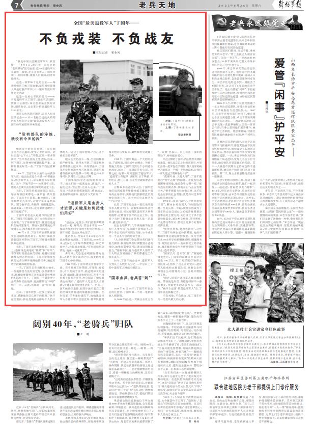 不负戎装,不负战友,是丁国年作为一名老兵最大的心愿。