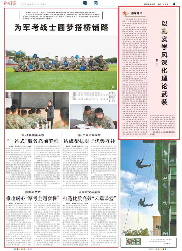 良好学风不会凭空而来,既要靠个人自觉,也要靠组织推动,更要靠制度规范的刚性约束。各级党委要把学风建设作为重要工作来抓,坚持一级带一级、一级抓一级,根据本单位实际制订切实可行的学习计划。本着以考促学、以评促学的原则,坚持学思用、知信行一体考核检验,着力走开以实际成效检验学习成果的新路子。坚持严的主基调不动摇,着力抓好组织抓学、党性淬炼、实践运用、检验评估、综合治理等各项措施的落实,做到立导向、抓示范、促转化、严督导相结合,促进好学风强力回归,更好支撑新时代强军事业发展。