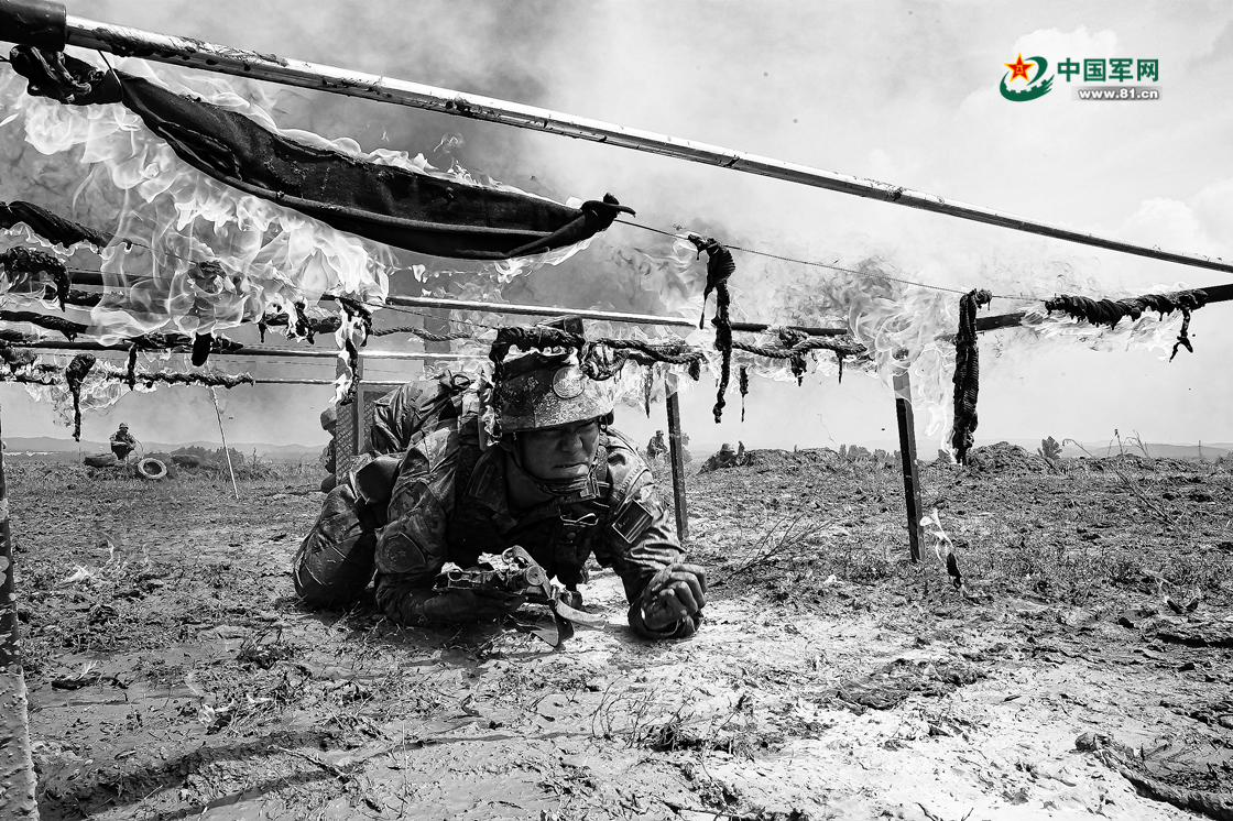 参训学员低姿穿越火网。高佳伟 摄