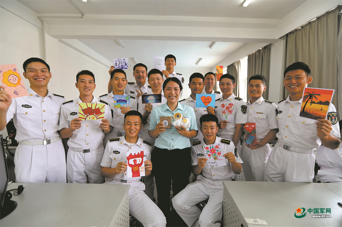 海军勤务学院学员自制贺卡为教员送上真诚祝福。鱼娇 摄