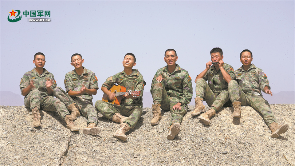 休息时间,新疆军区某团某连官兵同唱一首歌。 秦锐森摄