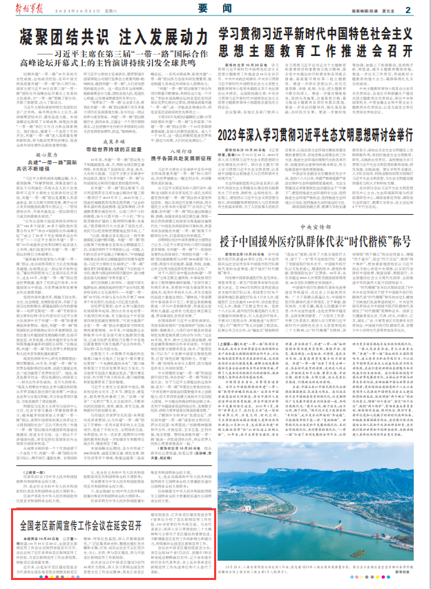 解放军报西安10月20日电 记者董一鸣报道:10月19日至20日,全国老区新闻宣传工作会议在陕西省延安市召开。会议总结了近年来革命老区新闻宣传工作经验,为老区新闻宣传工作出谋划策,助推老区高质量发展。