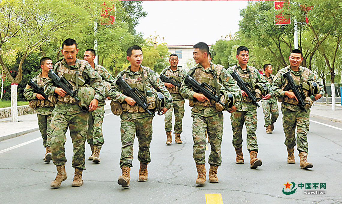 训练归来,七连官兵边走边交流经验。陈善锋 摄
