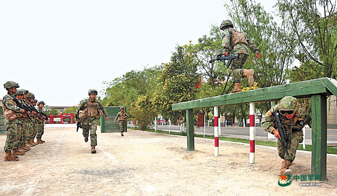 训练场上,七连官兵分组展开小比武、小竞赛。陈善锋 摄