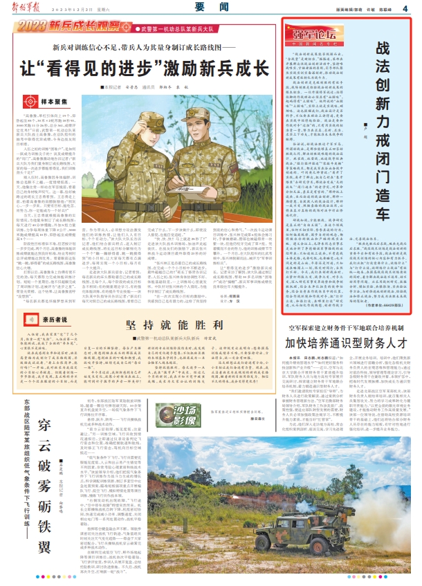 “战法创新成果能否脱颖而出,‘含战量’是硬标准。”据报道,某部在开展群众性战法创新活动中,坚持唯战唯实、宁缺毋滥的原则,引导部队聚焦实战实训实备谋创新,推动战法创新成果有效转化为战斗力。