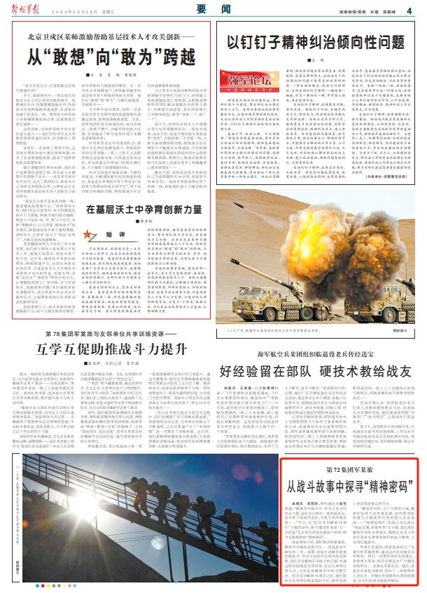 解放军报讯 肖雨轩、特约通讯员张毛报道:“解放苏州战斗中,作为主攻方向突击力量,连队在江桥村一线发起攻击,党员骨干组成突击队,不惧生死冲锋在前……”冬日,在“纪念苏州解放74周年”主题活动中,第72集团军某旅“七一功臣连”官兵登台讲述先辈战斗故事,探寻克敌制胜的“精神密码”。