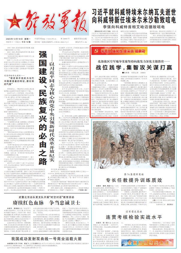 战位践学,集智攻关谋打赢。前不久该旅组织的一场训练中,某作战编组组长带领成员取得一系列抗击战果后,组织大家围坐在导弹发射车旁,话学习心得、谈备战体会、研制敌之策,共同论证某电磁信号快速捕捉要领,优化战勤人员分工和协同动作。为了打通学习与实践双向通路,该旅还广泛开展“一组一题”研讨攻关,探索解决制约部队战斗力提升的现实问题,将学习成果转化为推动部队高质量发展的新动能。