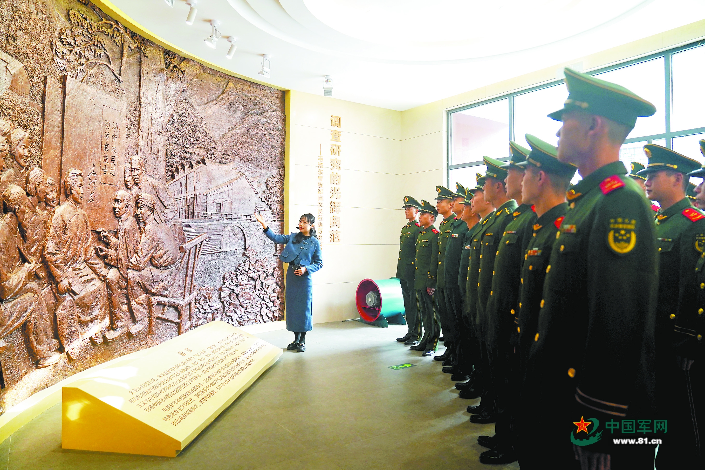 武警湖南总队湘潭支队某执勤中队官兵走进毛泽东考察湖南农民运动历史陈列馆,进行现地教学。作者提供