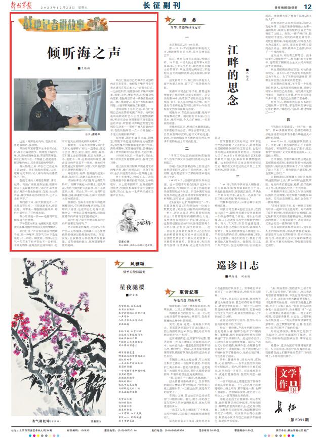 采访海军某部雷声业务长邱白仁时,我们在海边散步。我闻到了海的气味,风里的咸腥味湿重,带着阵阵寒意。邱白仁跟我不在一个频道上,他是追寻、解读噪声的人,耳朵里是海的呼吸声。