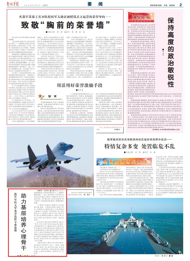 “心理骨干是基层心理服务工作的重要力量,建设一支素质全面的心理骨干队伍,不断提升心理服务能力,关系到基层心理服务工作质量。”该校领导介绍,学校拥有多个心理教学实验平台和心理学专家,他们长期聚焦应激医学、航海心理、军事认知等方面开展研究,取得一批科研成果。