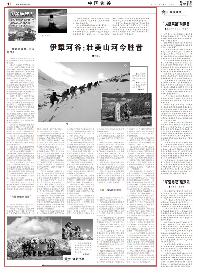 可是,我们的边防军人不是潇洒的旅游者,亦不是散淡的阅读者。对于他们来说,地理是神圣的版图,是身旁的界碑、脚下的国境线;而他们的青春岁月,则是正在延续的历史,是一代代戍边人的忠勇赓续、血脉传承。
