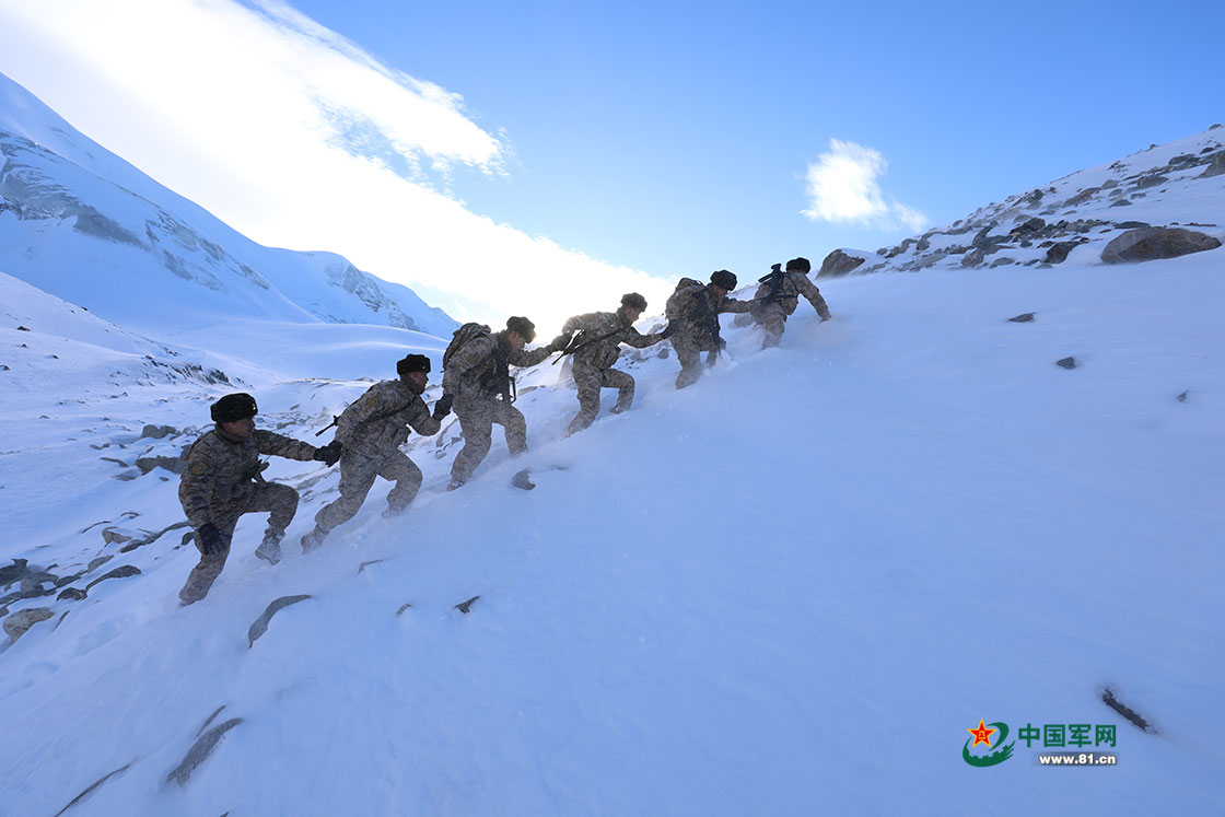 新疆军区伊犁军分区某边防连官兵巡逻途中。刘郑伊 摄