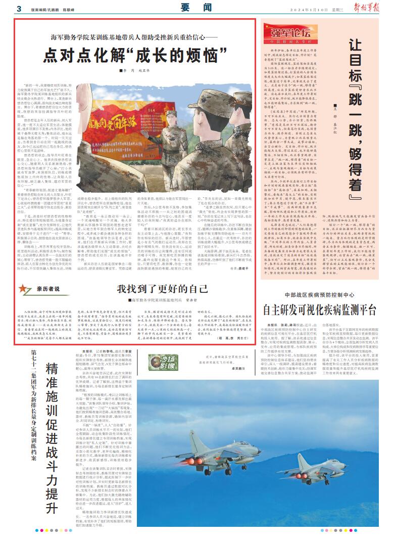 “‘成长的烦恼’是每个人都无法避免的,生活中难免会有失望,但只要肯奋斗就有希望。”指导员用他的成长故事鼓励我,让我重拾信心。战友们的暖心帮带,坚定了我践行入伍誓言的信念,同时也让我明白,成功没有捷径可走,只要有理想、肯奋斗,困难挫折再多也不可怕。
