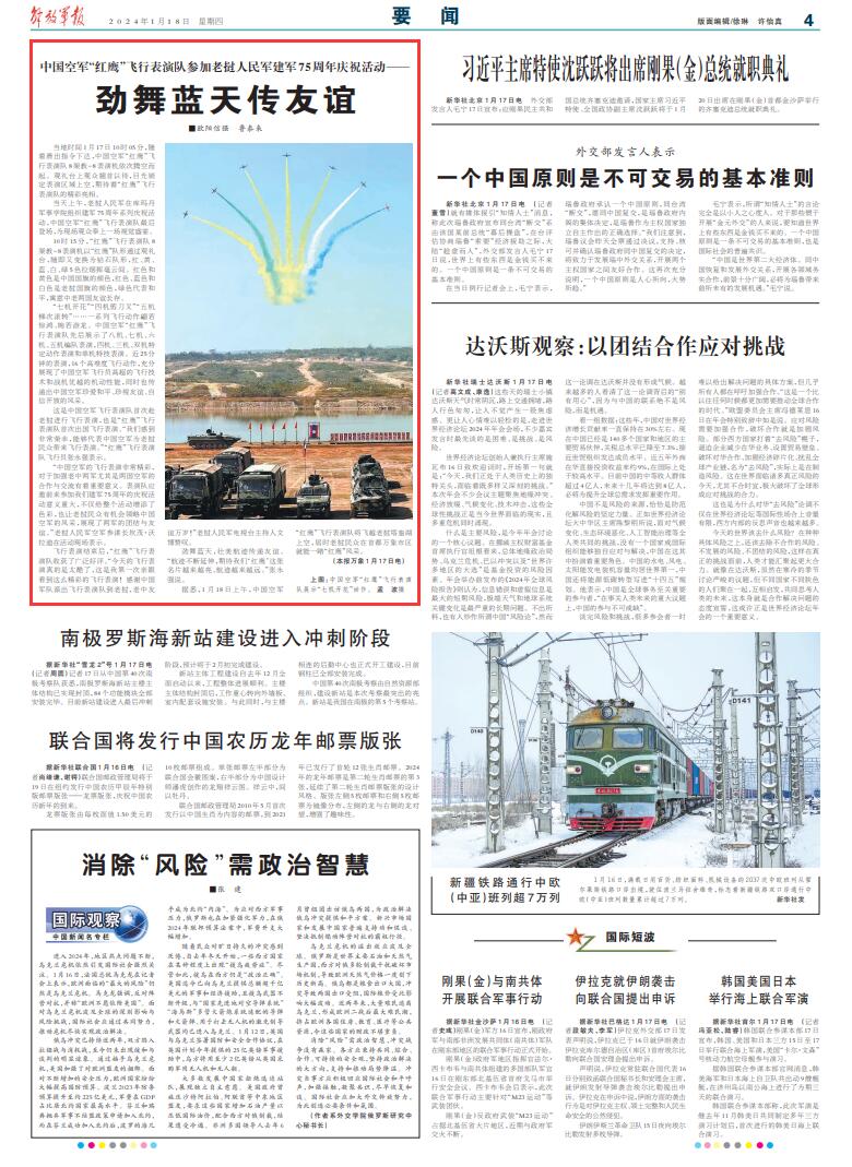 当地时间1月17日10时05分,随着滑出指令下达,中国空军“红鹰”飞行表演队8架教-8表演机依次腾空而起。观礼台上观众翘首以待,目光锁定表演区域上空,期待着“红鹰”飞行表演队的精彩亮相。