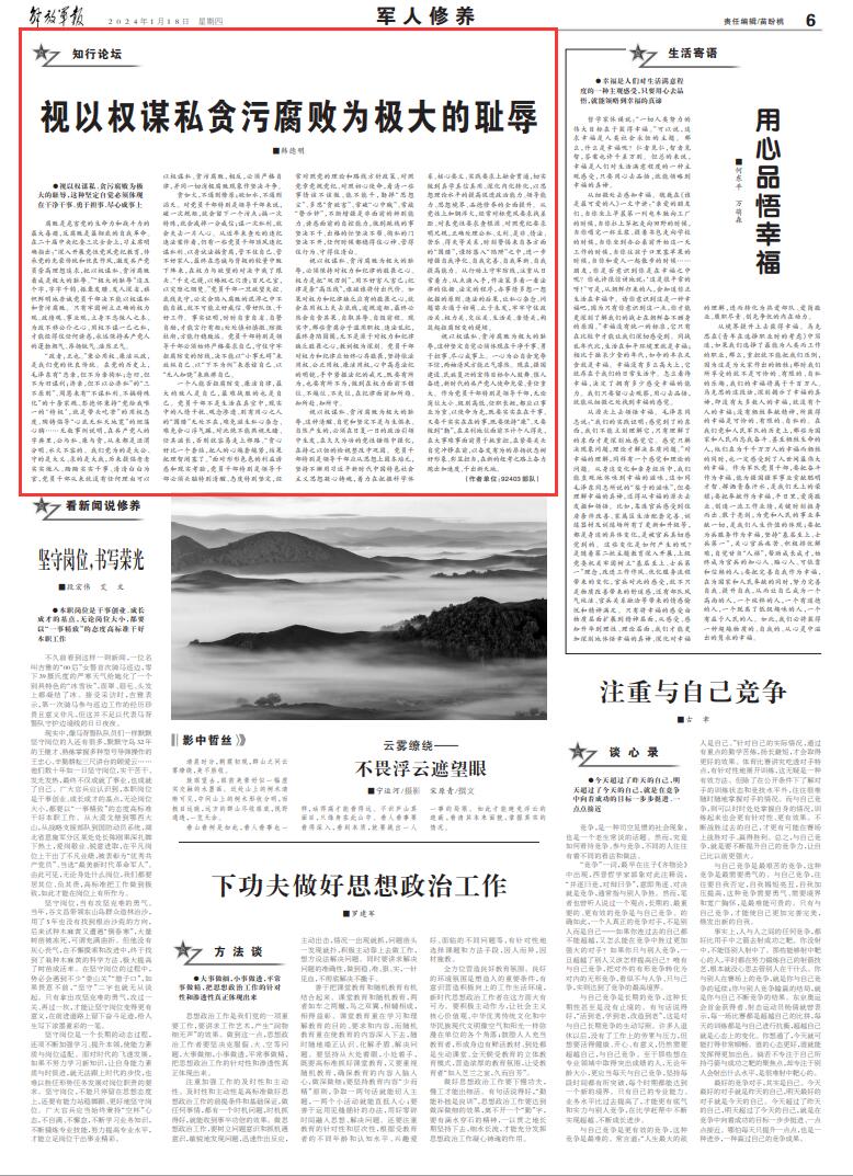 ●视以权谋私、贪污腐败为极大的耻辱,这种坚定自觉必须体现在干净干事、勇于担事、尽心成事上