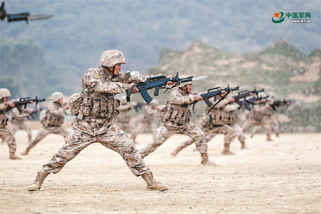 第74集团军某旅党委强化领战意识,带领官兵掀起训练热潮。官兵进行刺杀训练。