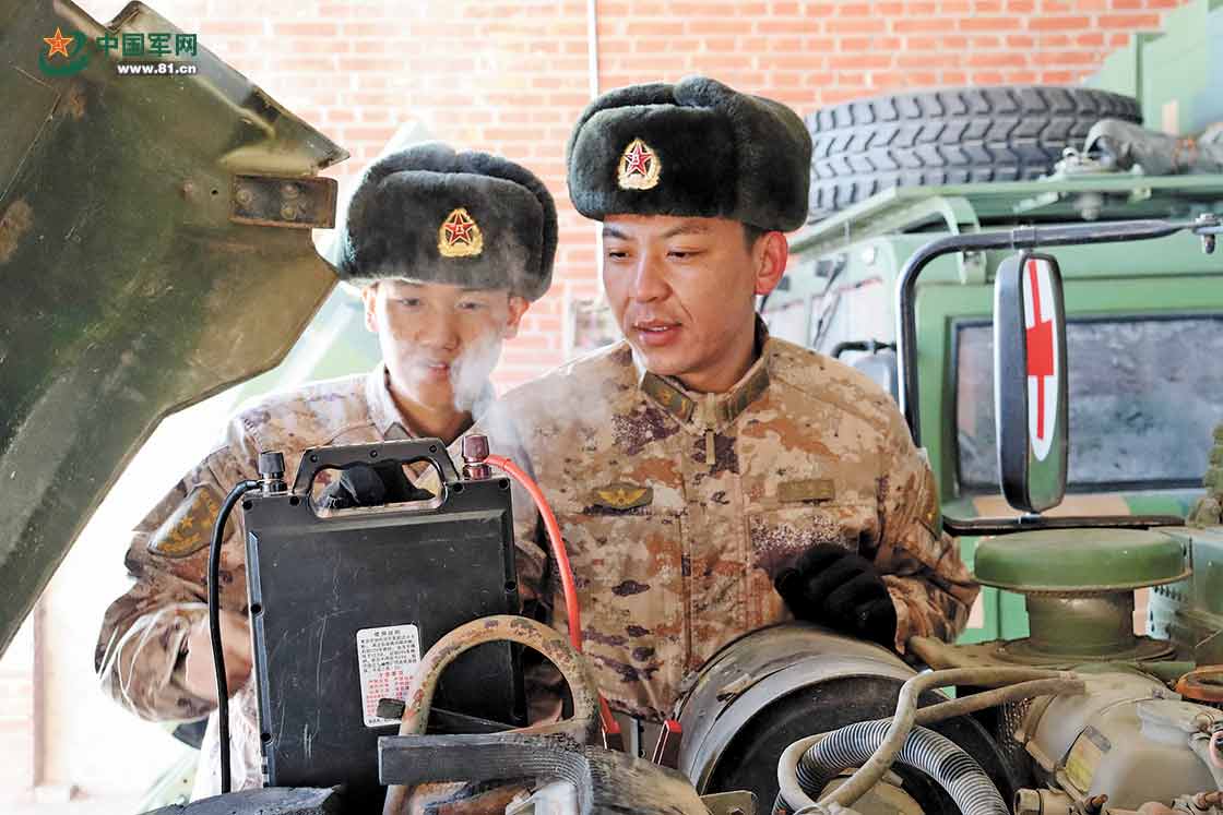 第79集团军某旅组织实弹射击训练。训练结束后,该旅立即开展装备保养工作。图为车辆故障排除现场。