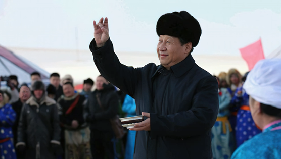 总书记和牧民们一起参加冬季那达慕