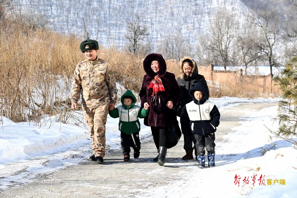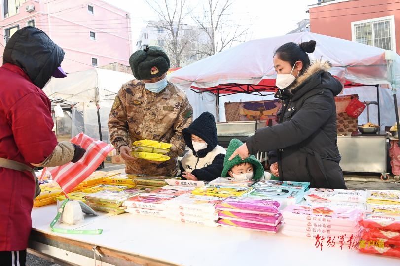 战士李志标起了个大早,带着妻儿选购新年礼物。今天,他们要看望一位特殊的长辈。