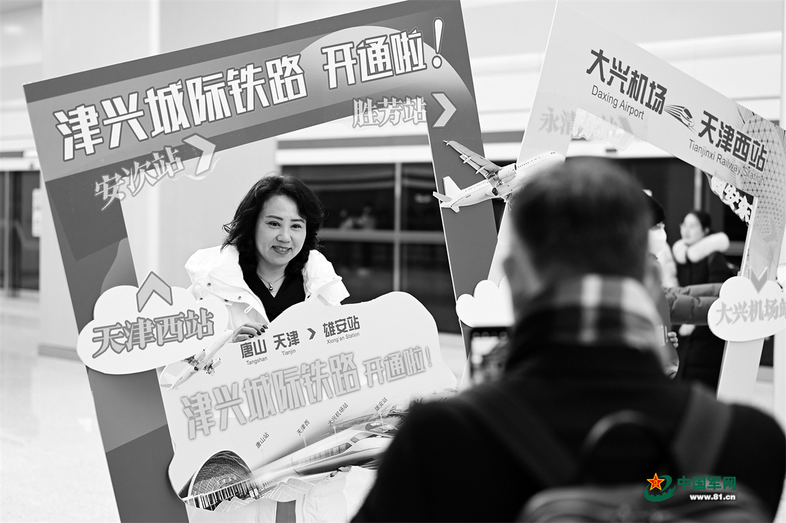 2023年12月,连接京津冀三地的津兴城际铁路正式开通运营,图为旅客在大兴机场站拍照留念。新华社记者 李然摄