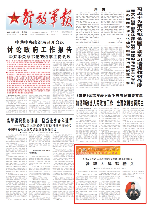 万顷碧波抒壮志,驰骋大洋砺精兵。“通过深入一线调研,我收集整理了新装备战斗力生成方面的一些建议,准备带到全国两会上,履行好人大代表的神圣职责。”张洪星说。