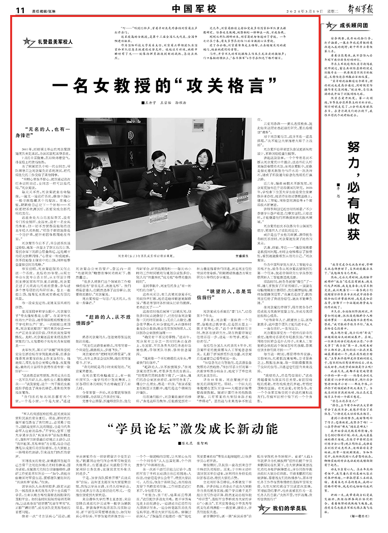 作为国防科技大学某系主任,刘京菊正带领团队为国家和军队信息系统建设攻坚克难。谈起这片新域,她眼中瞬时有了光——就像指挥员捕捉到新的战机,急迫且热烈。