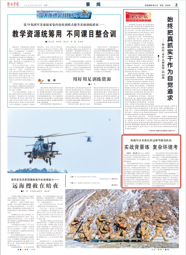 解放军报讯 李松原报道:近日,西藏军区某旅充分利用高原复杂地理环境,组织实战背景下的驾驶员集训考核,从难从严设置考核课目,实打实锤炼官兵过硬驾驶技能。